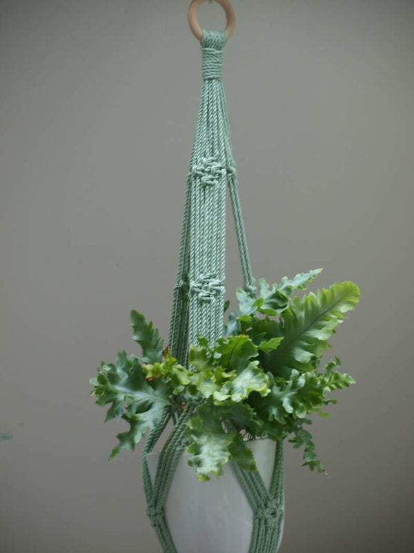 Dit is de handgemaakte plantenhanger ‘Ineke’ in de diverse kleuren. Gemaakt van 100% gerecycled katoen van Bobbiny. De hanger heeft een lengte van ca. 50-60 cm vanaf de ring tot onder de pot. Geschikt voor kleinere potten met een diameter van ca. 10-14 cm.